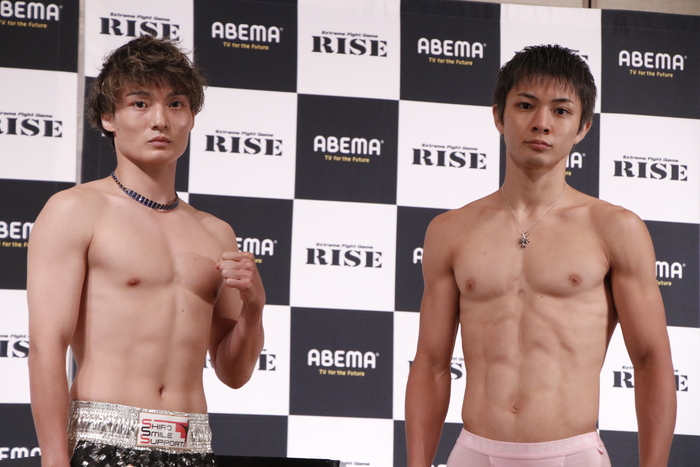 メインイベント(第12試合)のRISE世界バンタム級タイトルマッチ3分5R無制限延長Rで対戦する、王者・志朗(BeWELLキックボクシングジム)と挑戦者・玖村将史(999)は共に54.95kgで計量をパス。
