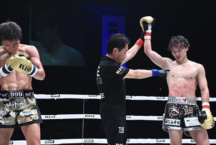 志朗はマイクを持つと「皆さん、応援ありがとうございました。この試合を組んでくださった関係者の方々、玖村選手ありがとうございました。本当に3年間、ファンの方々や応援してくださる方たち、お待たせしてすいませんでした。これでRISEが、自分が最強だと証明できたと思います。あともう一人、K-1の王者、金子選手とみんな見たいと思うのでぜひK-1vs.RISE世界王者対決やりましょう」と、K-1王者・金子晃大との対戦をアピールした。