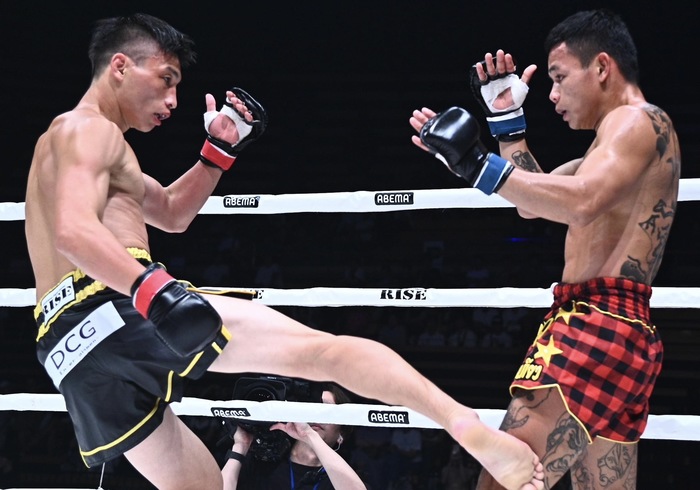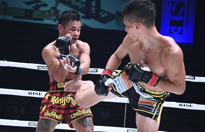 1R、まずは大﨑がジャブ、ラニャゲーオもジャブを返す。大﨑が右ローを蹴るとラニャゲーオは左フック。右カーフも蹴るラニャゲーオ。左右のミドルハイで大﨑の腕を蹴るラニャゲーオは左右フック、ワンツーもも積極的に放つ。大﨑は左ボディから左フック、ラニャゲーオも左ボディから左ヒザで対抗。
