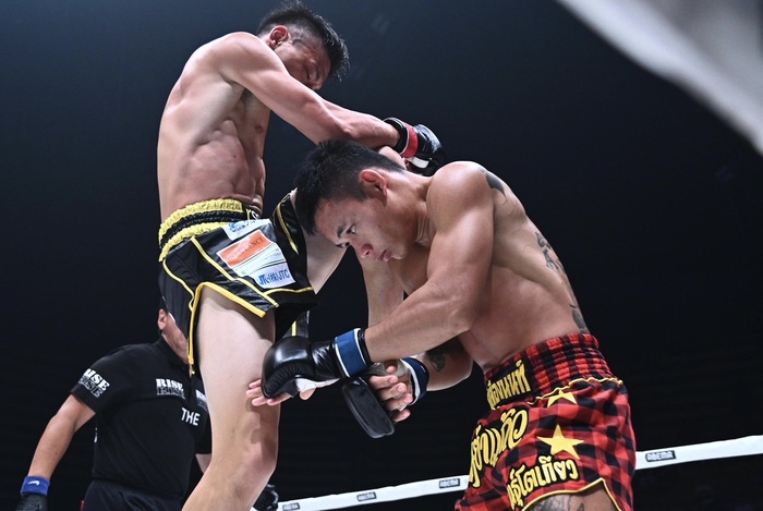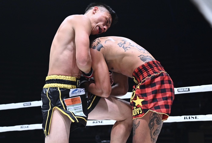 大﨑は左右ボディと右カーフ。何度もコーナーへ追い詰めるがラニャゲーオは粘る。大﨑の左ボディ、左フックで身体を丸めるラニャゲーオ。蹴って組み付く。大﨑はサンドバッグ状態にするがラニャゲーオは耐える。