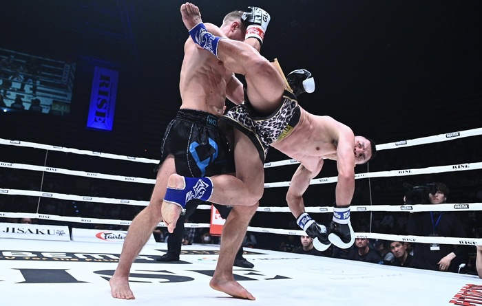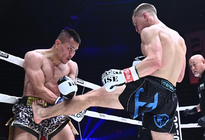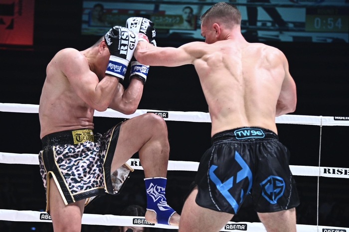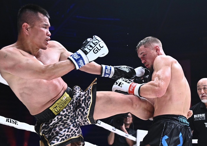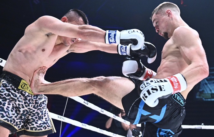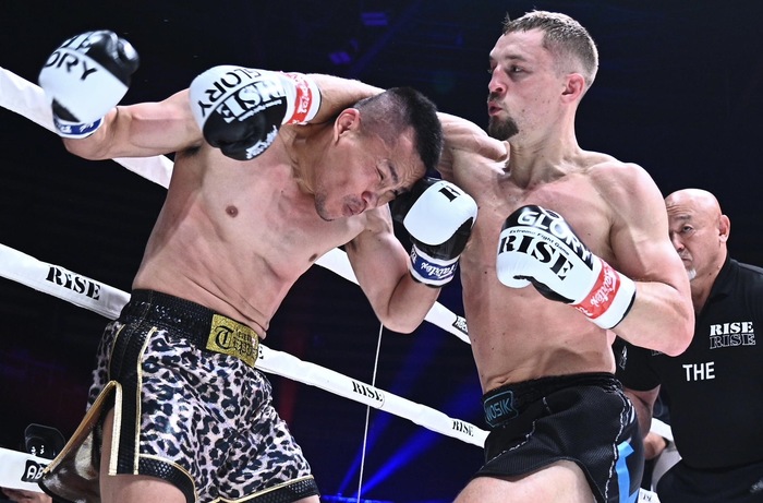 2Rもウォシクは右カーフを狙い撃ち。スアレックは胴廻し回転蹴りを放つが負圧。スアレックが左右ボディと左ミドル、ウォシクが細かくガードの上から連打し、左ボディストレートを突き刺す。ウォシクの細かい連打にヒザで対抗するスアレックだが、カーフにふらつき連打を浴びて棒立ちになる場面も。スアレックはヒザ蹴り。