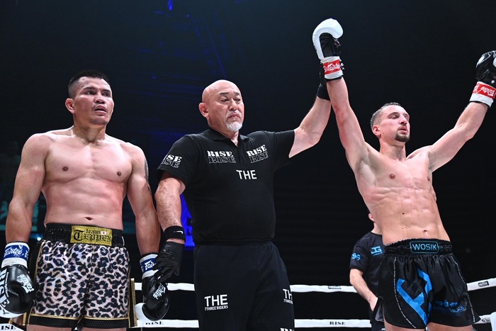 3R、スアレックは上腕を相手のブロックに押し付けての右ロー、左右ボディ。ウォシクはワンツーで前へ出ての右カーフ、スアレックが組んでくるとヒザ。さらにボディブローでも攻めるウォシク。カーフとボディに最後まで耐えたスアレックだったが、ウォシクのほぼ一方的な展開となった。