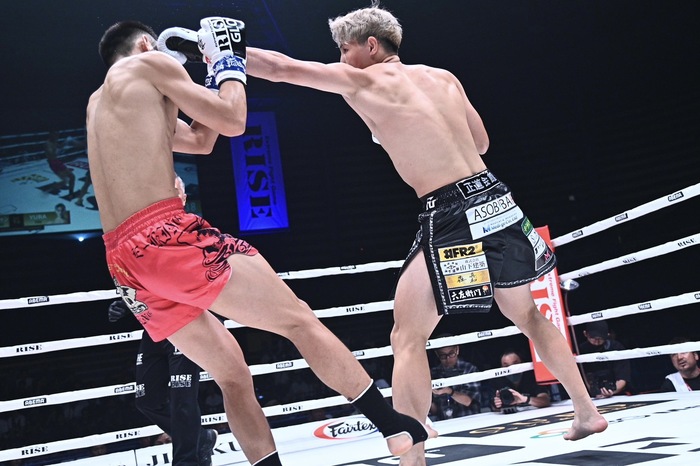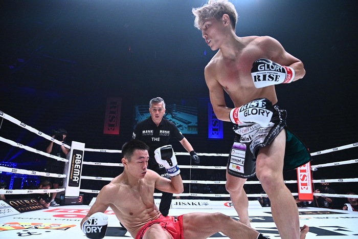 YURAは強いジャブ、右ストレート。デシャンはヒザを合わせに行くが、YURAは構わず右ストレートを2発撃ち、さらに右でなぎ倒して豪快なKO勝ち。