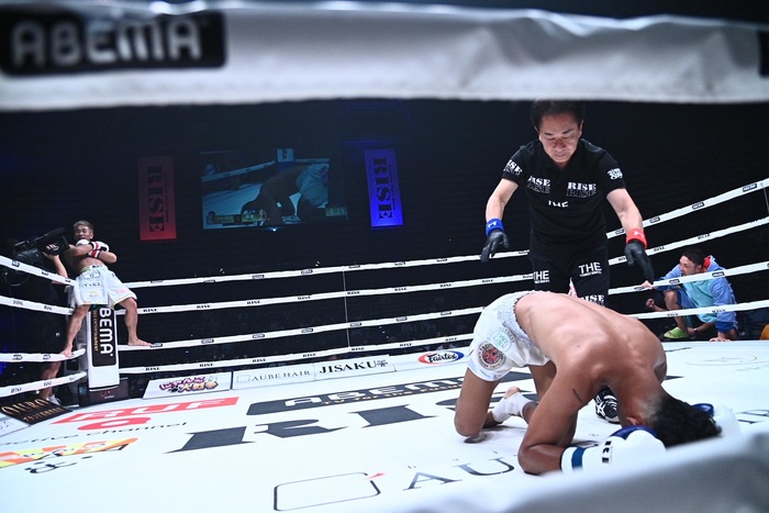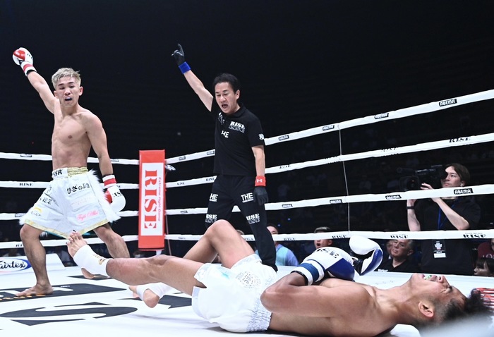 ジャブと右ローのオートーに良星はローからワンツーでどんどん前へ出ていく。オート―は右ロー。良星は後ろ蹴りを繰り出すと回転した勢いでそのまま左ストレート、これが見事にヒットし、オート―はもんどりうってダウン。良星の鮮やかなKO勝ちとなった。