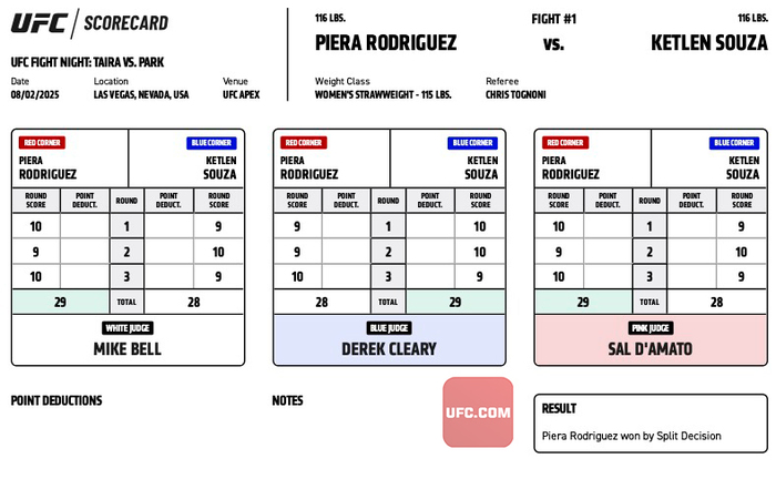 #UFCVegas108 Official Result: Piera Rodriguez (29-28, 29-28) defeats Ketlen Souza (29-28) by split decision