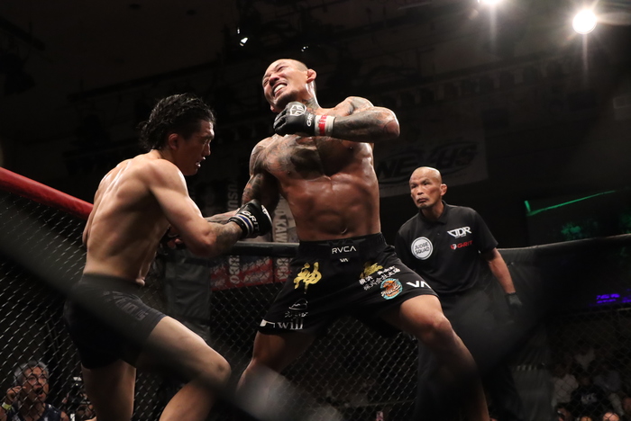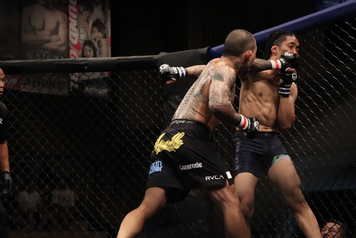 延長R、右を当てる中山は嵐士の組みを切ってバック、サイドバックからパウンド。嵐士もダブルレッグでテイクダウンも尻まで着いて切るとパウンド連打。試合後に中山は腕立て伏せも見せるタフぶりを見せた。