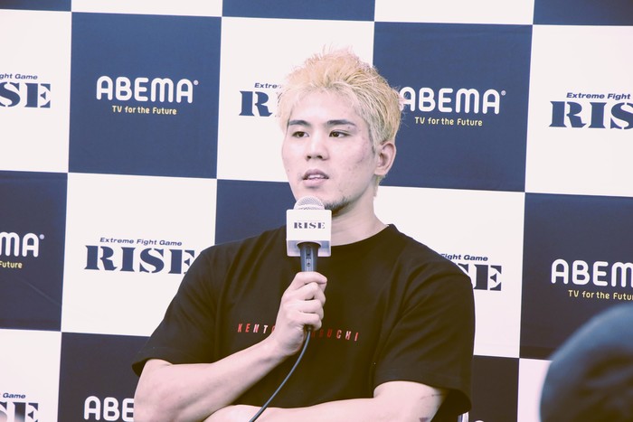 セミファイナル(第11試合)のRISE世界スーパーライト級タイトルマッチ3分5R無制限延長Rで、王者チャド・コリンズ(オーストラリア/Stirkeforce)から1Rにダウンを奪いながらも猛烈な追い上げを喰らい、判定2-1で逆転負けを喫した原口健飛(FASCINATE FIGHT TEAM)が試合後インタビューに答えた。