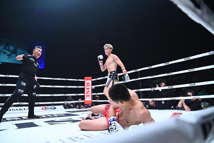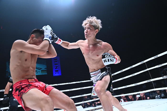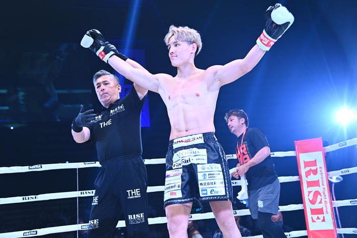 第5試合の「GLORY×RISE LAST FEATHERWEIGHT(-65kg)STANDING TOURNAMENT」3分3R延長1Rで、コン・デシャン(中国)を1R2分37秒でKOしたYURA(ダイアタイガージム)が試合後インタビューに答えた。