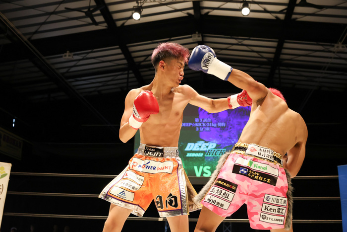 DEEP☆KICK-51kg契約にて初勝利を狙う根本と6月のプロデビュー戦で勝利を収め2勝目を狙う小野田が激突。