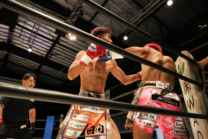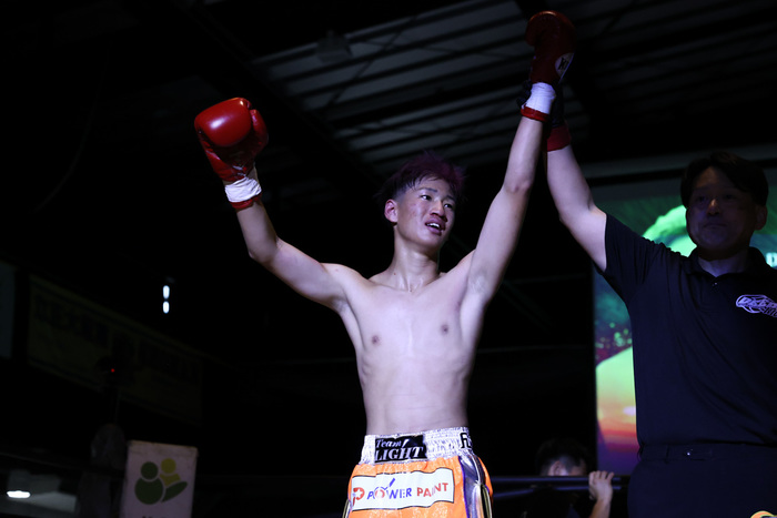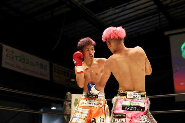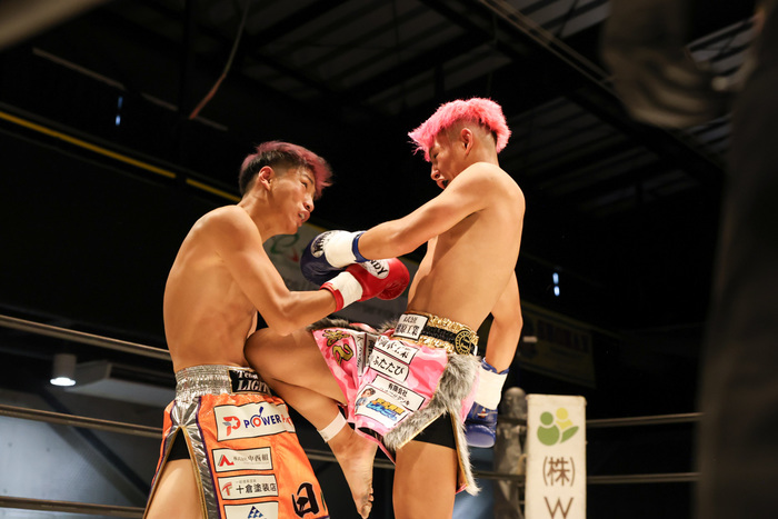 ルーキー同士の戦いは1R、ステップを踏みながらリングを周りカーフにストレートと放つ小野田、ワンツーに左フックとパンチを軸に立ち回る根本、互いにヒットは奪うも静かな立ち上がりを迎える。