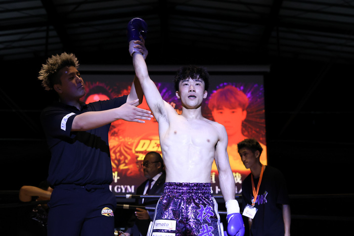 最終ラウンド、ここで逆転を狙いたい崇斗は飛び膝にワンツーで起死回生を狙うも西垣は下がりながらも着実にヒットを重ねていき、そのまま試合終了。3R通じて常に圧をかけながら前に押し出るのは崇斗だったが、1Rのダウンを含め西垣は要所でのヒットが光り、判定はダウンポイントが活き西垣が判定勝利。嬉しいプロ初勝利を飾った。