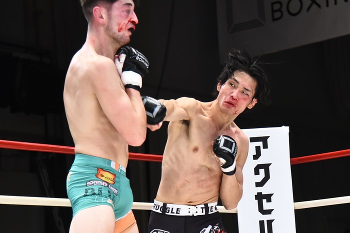 「SBのスーパーライト級のチャンピオンは僕なんで、次の試合で笠原選手を負傷させて自分が代役で出ようかな、と思っています。笠原選手はさらに上の5階級制覇も狙っているんですよね? どんどん階級を上げていって、ヘビー級の坂本(優起)選手を守るためにも、ここで止めなきゃいけない使命が僕にはあります」