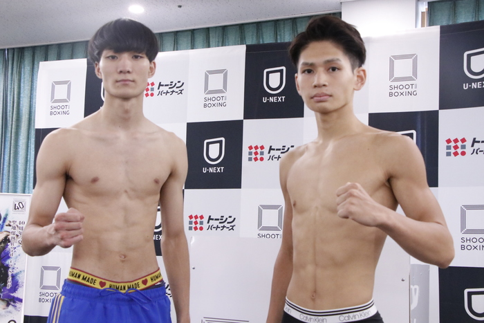 メインイベントのSB日本スーパーライト級タイトルマッチで対戦する王者イモト(左)と挑戦者・笠原