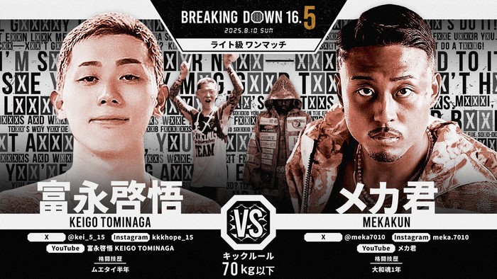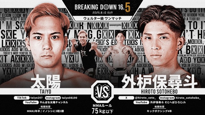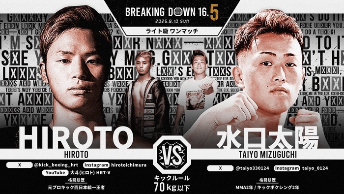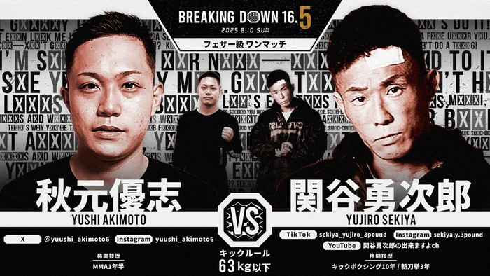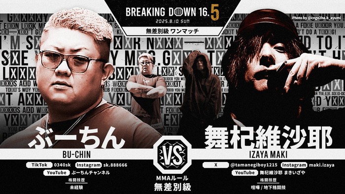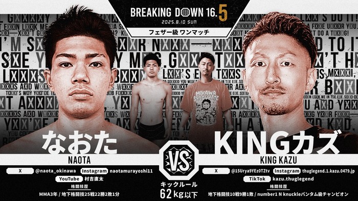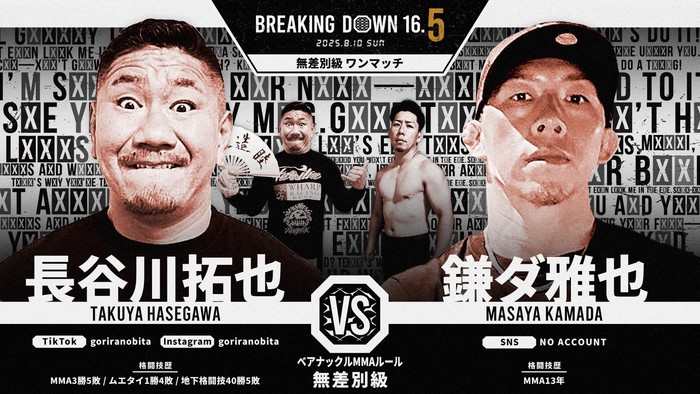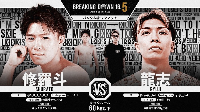 2025年8月10日(日)都内某所で開催される『BreakingDown 16.5』の対戦カードが発表された。