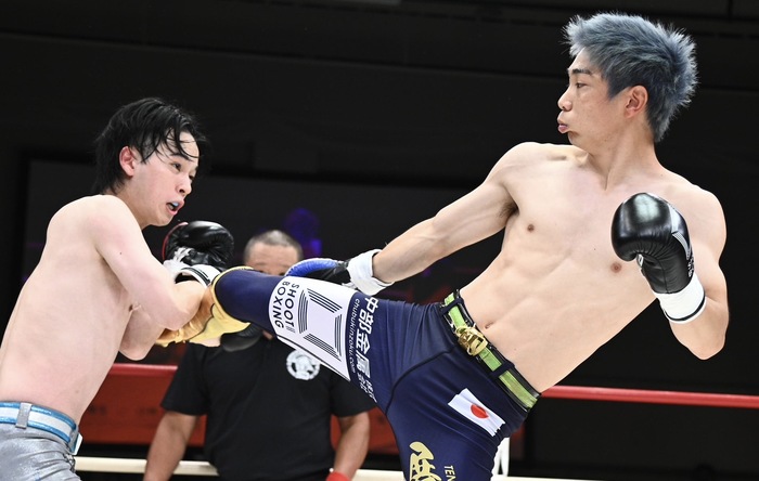1R、サウスポーの小林は左ストレートからの右フックでたびたび打ち合いに行く。竹野は右のクロス狙い。小林のワンツーをノーガードで受けて余裕の笑みを浮かべワンツーを返す。攻めていく小林を左右フックで迎え撃つ竹野。小林のパンチに竹野は左フックを合わせに行く。