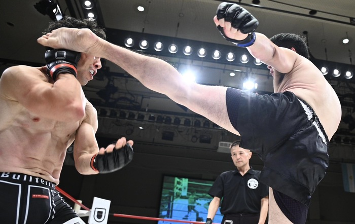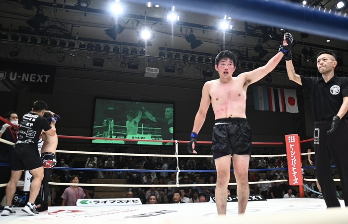 本戦の判定はドロー、延長戦へ。3R終盤に右目上をカットした金子にドクターチェック。再開後、佐々木の首相撲に金子はクリンチフックを連打したが、出血がひどく再びドクターチェック。ここでストップがかかり、佐々木のTKO勝ちとなった。