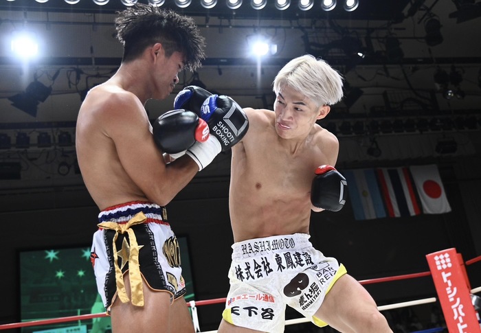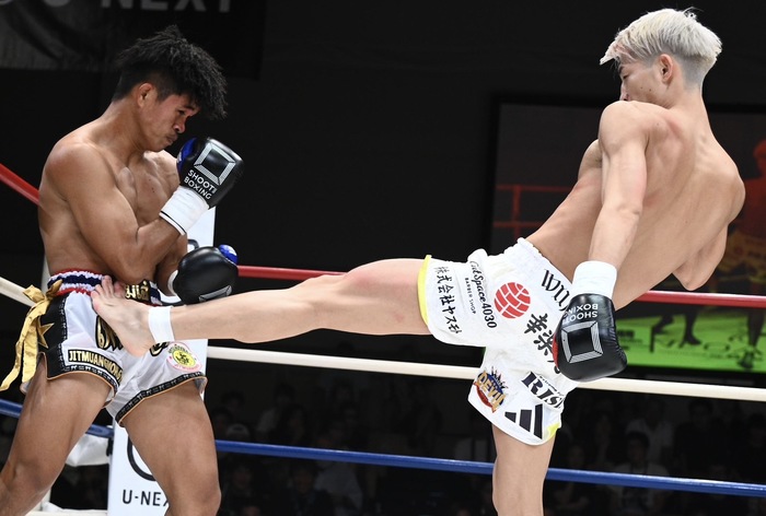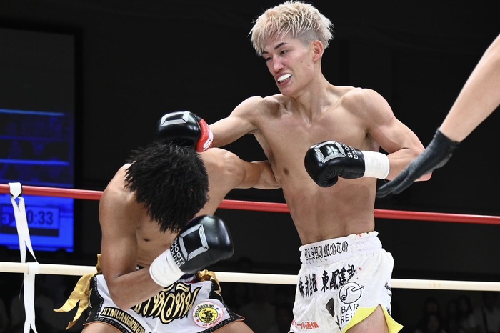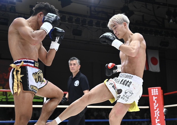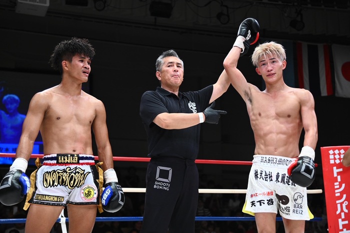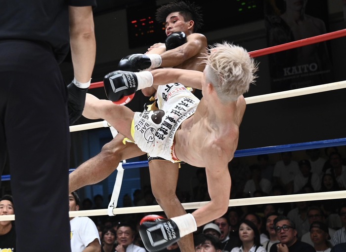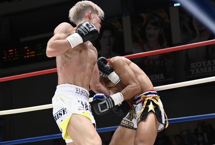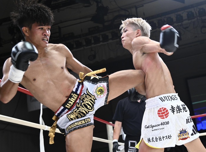 そこへ安本が右フックをヒットさせ、ペットフアヒンがフラつく。下がるペットフアヒンはロープを背負って打ち合いに応じるが、安本の右フック、右ストレートをもらって棒立ちに。ダウン寸前のペットフアヒンへ安本がラッシュをかけ、右フックでついにダウンを奪う。最後は安本が胴廻し回転蹴りで場内を沸かせ、試合終了。
