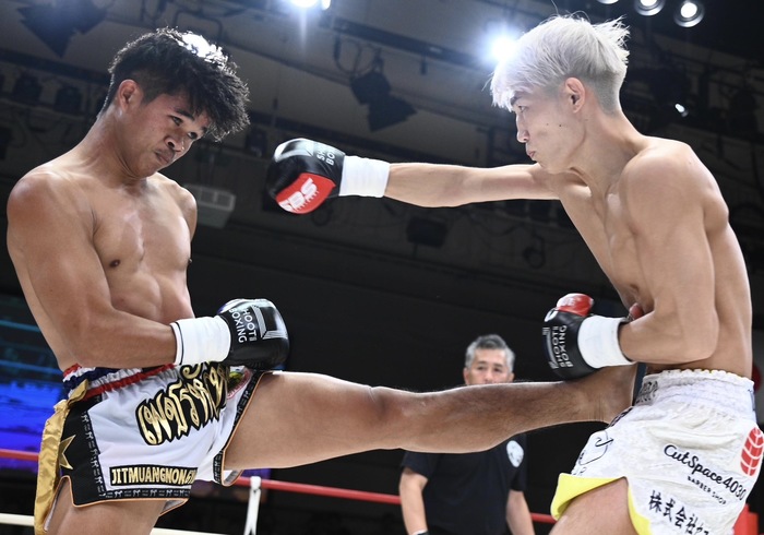 1R、サウスポーの安本は左ミドル、左ハイ、左の三日月と右カーフ。ペットフアヒンは強烈な左フックを打つ。ワンツーを打ち込む安本。ペットフアヒンは組み付くとボディロックから持ち上げて安本を投げ倒し、シュートポイント(1点)を奪う。安本もお返しとばかりに首投げにいったがこれは不十分。安本が左ミドルから左ハイ、左三日月、さらに右ストレート。オーソドックスになった安本がジャブから右ストレート。