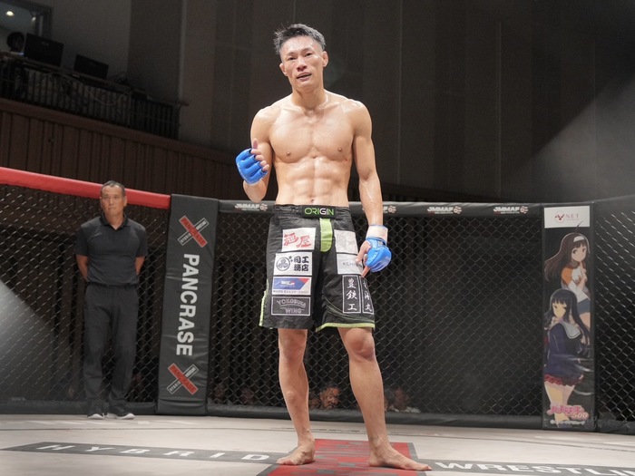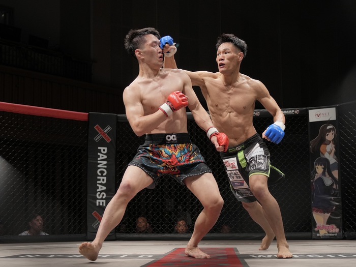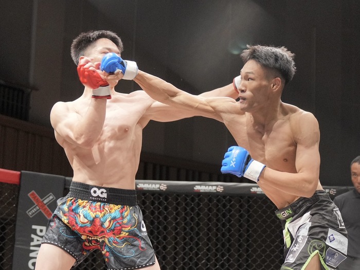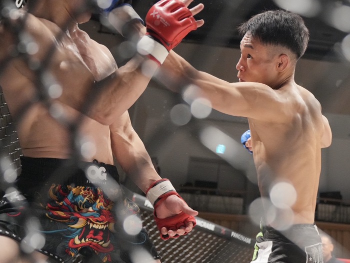 1R、ともにオーソドックス構え。中央を取り左の蹴りは福里。清水は長い右から右三日月蹴り。スイッチからオーソに戻しシングルレッグの福里を切った清水はワンツーで前に。ボディロックで組んだ福里はバッククリンチも胸を合わせた清水。体を入れ替え離れる両者。