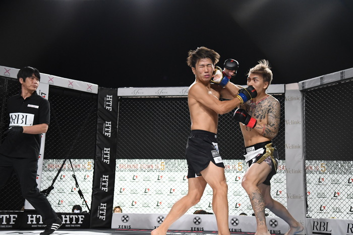 ワンツーで先制する修羅斗に龍志も左右フックで打ち合い、至近距離でのパンチの打ち合いとなる。右ミドルをキャッチして修羅斗を転倒させる龍志。壱岐織のある修羅斗がワンツーの連打で前へ出て行き、パンチの回転力で優り龍志にケージを背負わせる場面が多かった。本戦は修羅斗に1票入ったがドローで延長戦へ。