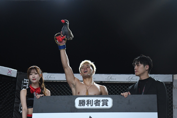 次について聞かれると「自分としては1Rで仕留めきれんかったから反省点だらけなんですけど、自分は本当に喧嘩したいんで、今後もMMAしたいんですよ。だから初代ライト級チャンピオンのNAO選手とやりたいっすね。あの人もRIZINチャンピオン目指してるっていうぐらいだからMMAなんすよ。1番やりたいです」と、BreakingDownライト級王者NAOとMMAで戦いたいとした。