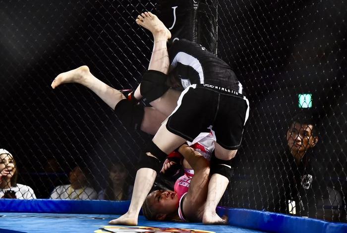 対する渡邊花美は、ボンサイ柔術所属でホベルト・サトシ・ソウザの秘蔵っ子。幼少期からサトシの直接指導を受けて育ち、小学校、中学校を卒業し、浜松湖南高校に入学しても柔術を続けて、近年では2024年のIBJJFアジア ジュブナイル2 青帯オープンライト優勝・階級別準優勝。RIZIN『柔術甲子園』で優勝。2024年12月のSJJIFワールドでは、女子ジュブナイル青帯ライトフェザー級優勝、そしてノーギでも2025年コパブルテリア ノーギ女子アダルト青帯ライトフェザー級で優勝を果たしている。
