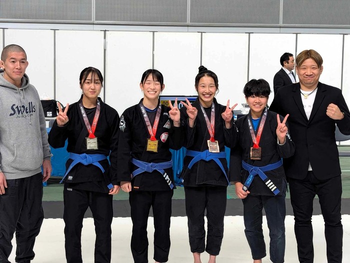 【写真】2024年12月30日『RIZIN甲子園・柔術フェスティバルカップ2024』女子53kgで優勝した渡邊花美(左から3人目)。右隣は3位のNOEL。