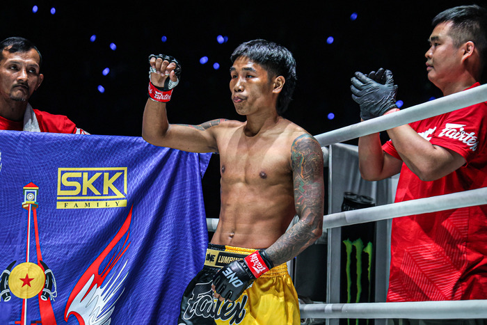 「今日の試合の内容はボディに自信があったので狙っていたんですけれど、相手の動きを見てハイキックが入りそうだったから打ったら入ったって感じですね」と勝利者インタビューに応えると、2連続となる35万バーツ(約155万円)のボーナスを獲得。
