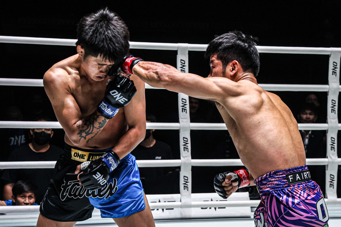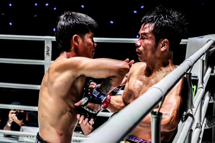 3R、ヨードレックペットが左ストレートを顔面とボディへ、ポンペットは頭を振ってワンツー、左ミドルハイ、左縦ヒジ。ヨードレックペットも左ヒジ。至近距離で頭を振りながら左右フック、右ミドルハイ、ヒジを打つポンペット。ヨードレックペットが左ストレートを打って前へ出るところにポンペットが右フックを打ってヨードレックペットを下がらせる。