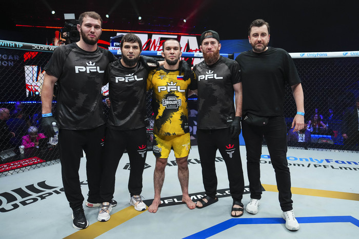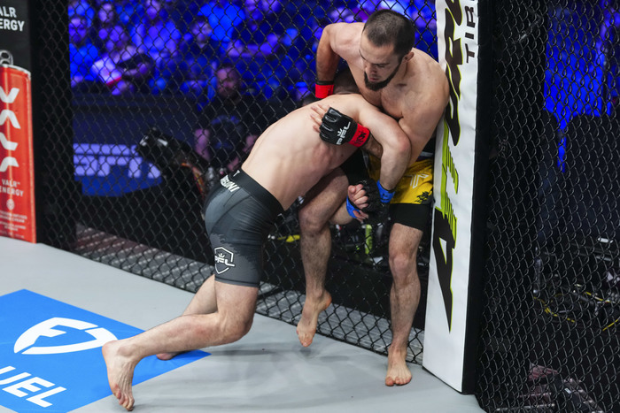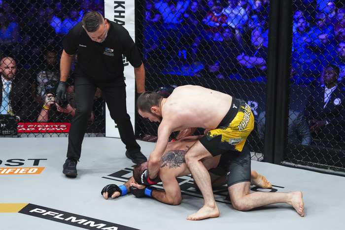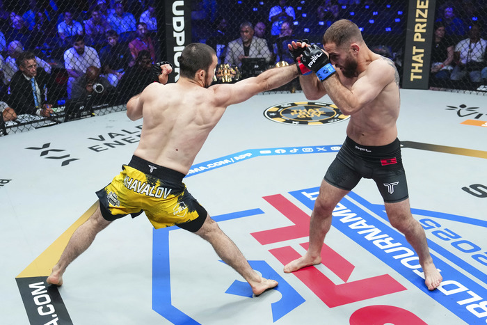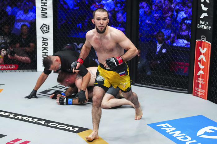 バンタム級のリナット・カヴァロフ(ロシア)は元Eagle FC王者で、2023年のUAEWでは吉野光に2R TKO勝ち。ダゲスタンでハサン・マゴメドシャリポフやマゴメド・マゴメドフと練習。ATTでは中村倫也とも組んでいる。ンドレジョニをケージを背にレバーへのヒザ蹴りでダウンさせてのパウンドでTKO勝ち。MMA10勝0敗に。