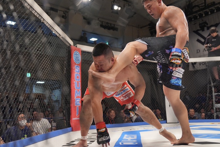 大成が左STからサッカーキック2発で酒井をKO、メガトン級王者に
