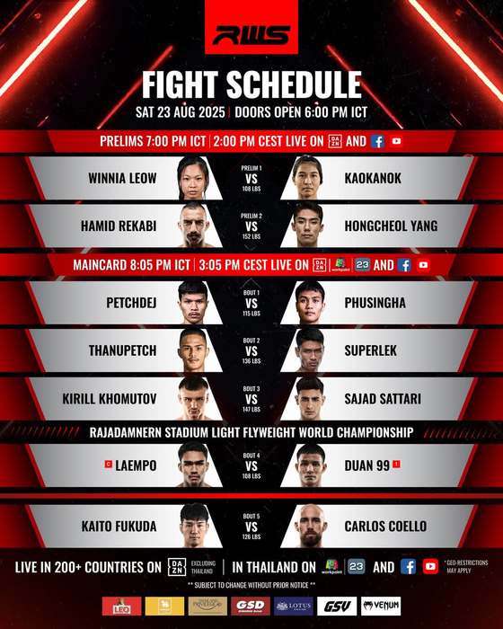 福田はメインカードの最終試合(第5試合/メインイベントは第4試合のラジャダムナンスタジアム認定ライトフライ級タイトルマッチ)で、カルロス・コエーリョ・カナレス(スペイン)とフェザー級3分3Rで対戦する。