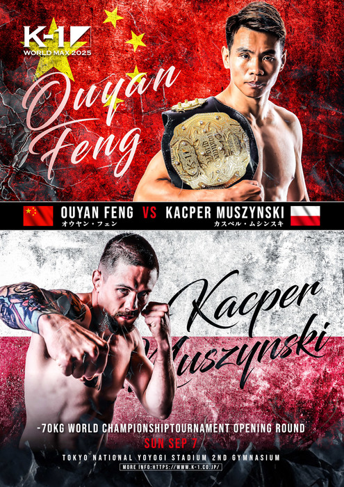 ムシンスキは“執念のラストマン”と呼ばれるポーランドの強豪。MFC世界タイトルをはじめ、ポーランド国内王座を総なめにしてきた覇王。2024年3月にK-1 WORLD MAX世界最強決定トーナメント開幕戦でストーヤン・コプリヴレンスキーからダウンを奪い勝利。準々決勝はゾーラ・アカピャンから勝利するも、準決勝はケガで欠場。その後はバレンティン・マヴロディン、チェン・ヨンホイにKO勝ち。戦績は26勝(12KO) 1敗1分。