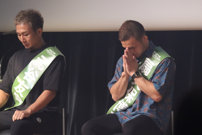 また、別室で行われたインタビューで扇久保は「本当にありがとうございます。本当に吐きそうでした。心臓が口から出ると、そういう感じでした。試合より緊張しました。本当に良かったです」と安堵の言葉。