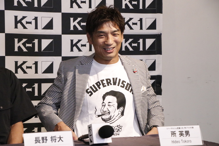 会見にはHERO'Sでスターとなった所英男も出席。「HERO'Sのポップアップショップをやっていた時があって、その時にもう20年前だと聞いて。懐かしくてHERO'SのTシャツをいっぱい買ったら、このような話があってビックリしました」と語った。