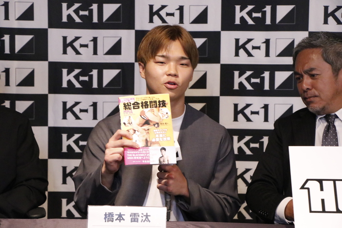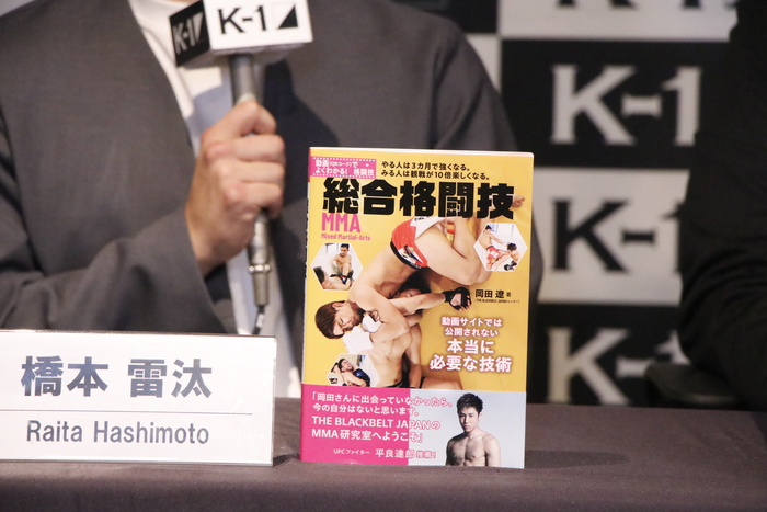 橋本は今後もMMAをやるつもりかと問われると「自分は立ち技ですけど、チャンスがあるならばやっていきたい。まだ練習しないと分からないけど、奥が深そうで楽しそうです。本を見ながら動いていこうと思っています」と二刀流に興味があるとし、向いているテクニックはありそうかと聞かれると「まだやってないので分からないです(笑)。この本も、昨日功也会長にもらいました」とした。