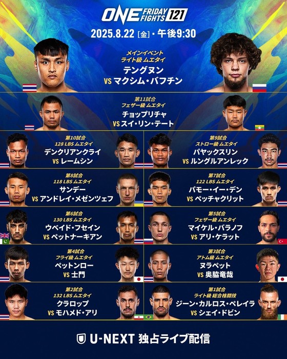 2025年8月22日(金)タイ・ルンピニースタジアム『ONE Friday Fights 121』(U-NEXT配信)にて、吉成士門(エイワスポーツジム)がONEフライ級ムエタイ3分3Rでペットンロー・シッルアンピナンフォン(タイ/An Sukhumvit)と対戦。ONEでの3連勝を狙う。