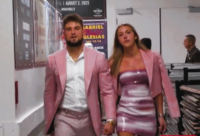 ロスタは会場入りした際に、現パートナーのダコタ・ディッチェバと同じピンクのシミラールックで会場入り。コーナーにはATTのマイク・ブラウンがつく。