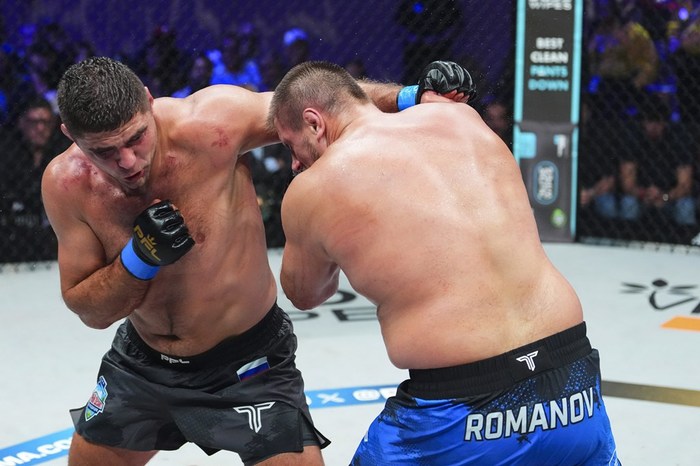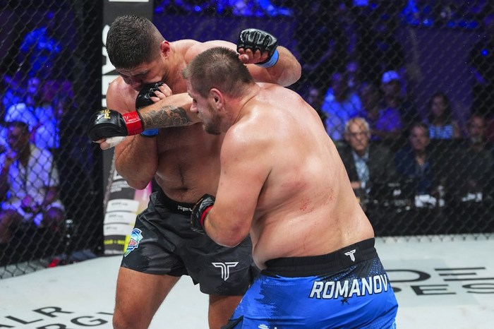 ロマノフは元UFCランカー。トーナメント一回戦は元Bellatorタイトル挑戦者のティム・ジョンソンにスタンディングネックロックで一本勝ち。準決勝は元Bellator暫定王者のワンレンティン・モルドフスキーのヒザがローブローとなりNC。そこまでの判定でロマノフが決勝に進出している。