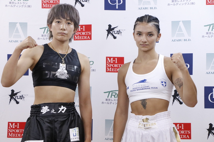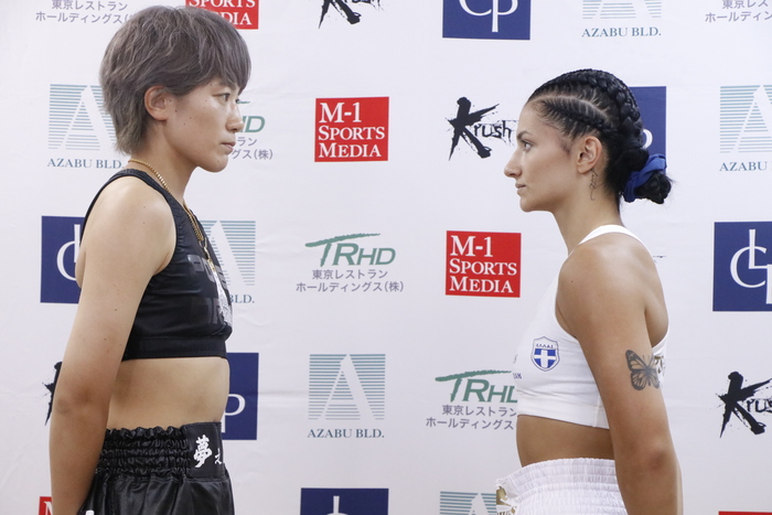 メインイベント(第9試合)のKrush女子フライ級(-52.0kg)タイトルマッチ3分3R延長1Rで対戦する、王者・池内紀子(POWER OF DREAM)と挑戦者ソフィア・ツォラキドゥ(ギリシャ/PANTHERS SPORTS ACADEMY)は共に51.9kgで計量パス。