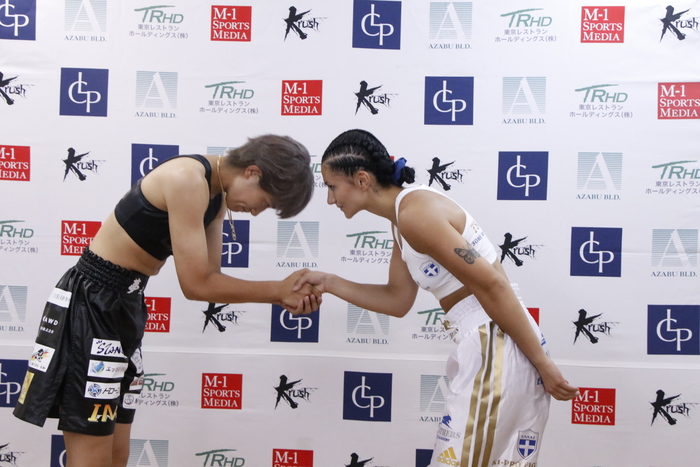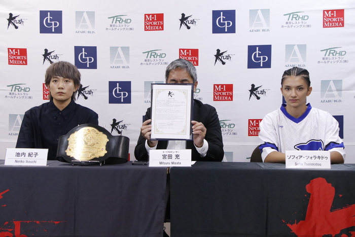 続いての会見でツォラキドゥは「試合を前にして準備しすぎるくらい準備してきました。子供の頃からの夢が叶ったという感じです。明日の試合が待ち遠しくてたまりません」、池内は「まずソフィア選手、遠いところからありがとうございます。KOでしっかり勝って大会を締めくくります」と、それぞれコメント。