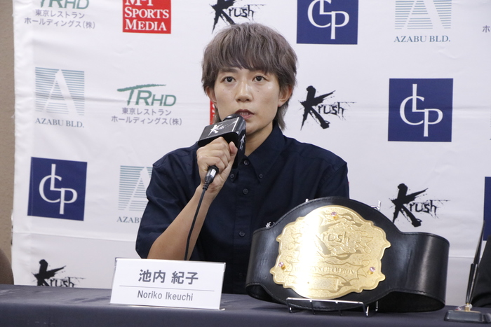 今回が初防衛戦となる池内は、その緊張感やプレッシャーの有無について聞かれると「防衛戦ですけれど挑戦する気持ちでいるので、挑戦の気持ちを忘れずに全力で守りに行きます」と、自分が挑戦する気持ちでいると話す。。