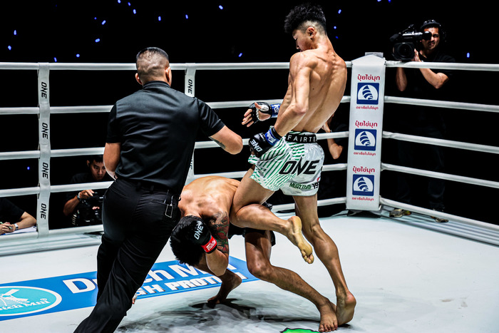 前へ出る士門にペットンローもワンツーの連打、左フックを打つが、士門は右インローからの右ストレート、左ストレートで3度目のダウンを奪い、KO勝ち。圧勝を収めた。士門はこれでONE3連勝。