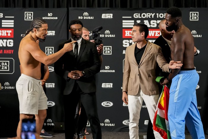 元ヘビー級タイトル挑戦者でGLORYのスター選手、レヴィ・リグターズ(オランダ)とジャマール・ベン・サディック(モロッコ/ベルギー)は、激しいフェイスオフ中にセキュリティに分離される事態となった。彼らは、長年待ち望まれた大一番として、メインイベントで激突する。