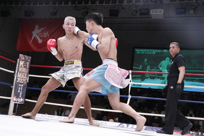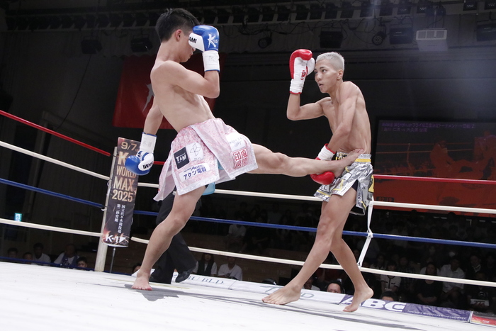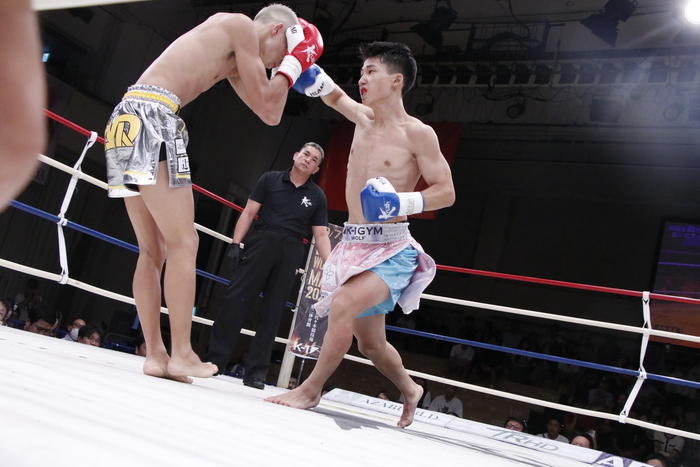 1R、互いに右カーフを蹴り合う。前に出る大久保は右カーフ、右ロー、左三日月、ロープに詰めると左ボディ。吉川は大久保の右カーフをカットしつつジャブ、大久保が入ってくると左右フックで迎え撃つ。大久保がパンチを打って来ると右カーフを合わせる。