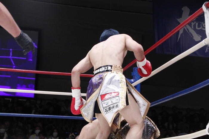 パワフルなパンチのラッシュをかける安尾が畳み込んでの右フックでダウンを追加。渡部は左ストレートで打ち合いに行くが、最後は安尾の左ボディ連打でマットへ沈んだ。