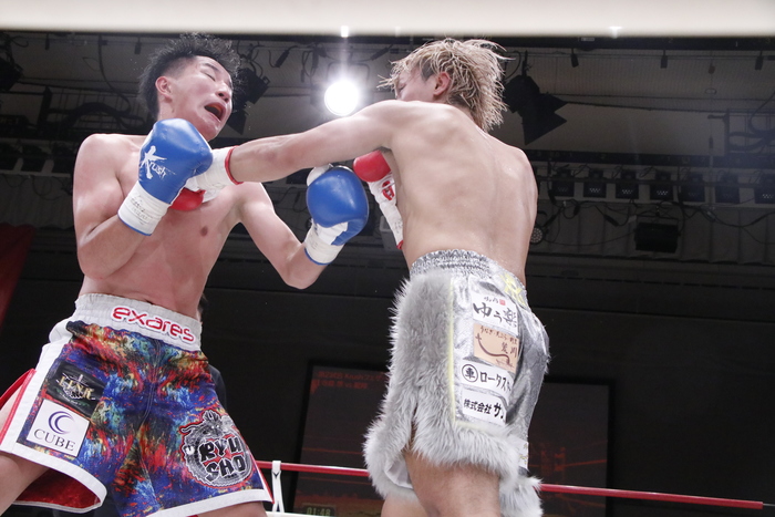 3Rもロープを背負う寺島だが左ミドル、右フック、ジャブを当てていく。前に出る龍翔は左ボディを打つが寺島に先手を取られる。
