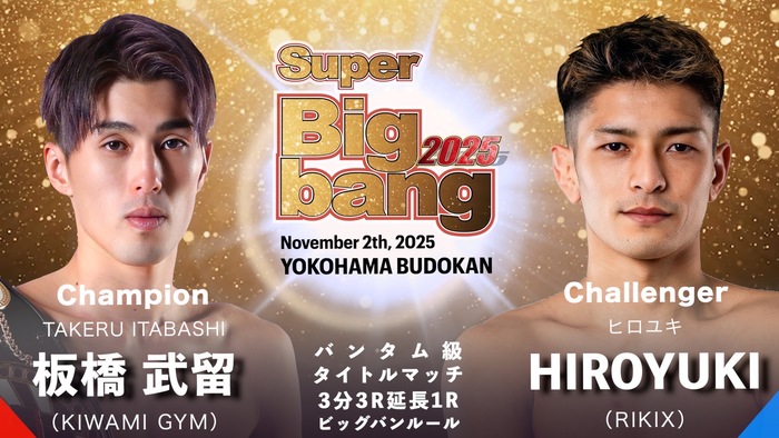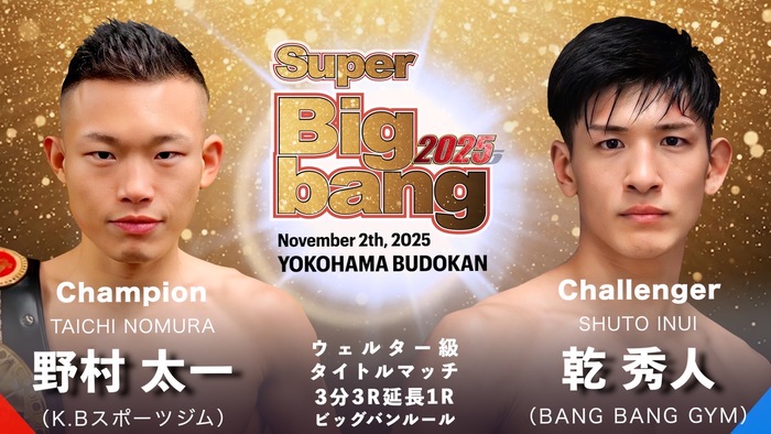 2025年11月2日(日)神奈川・横浜武道館『スーパービッグバン2025』において、4階級のタイトルマッチが行われることが決まった。
