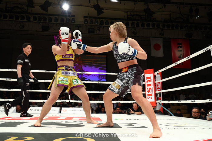 「結果的には1ラウンドKOをできて嬉しかったんですけど、やっぱりVASILEUSの先輩方みたいに1発でスコーンと倒せるような選手になりたいので、まだまだ改善点がいっぱいあるなという感じでした」
