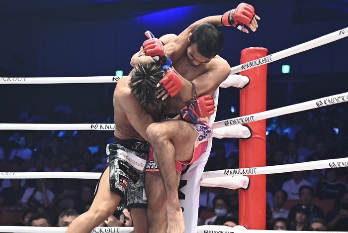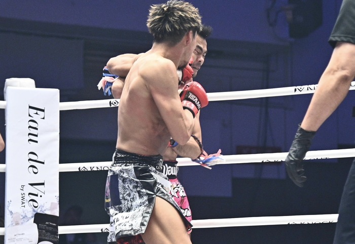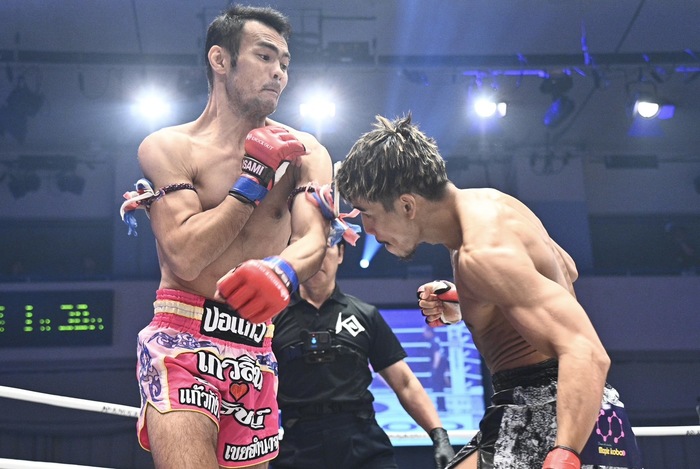 しかし、ゲーオガンワーンは堪え、ここからいきなり首相撲の展開に持ち込む。軍司も組みで対抗。軍司が右インローからロープを背負ったゲーオガンワーンに打ちに行ったところで、ゲーオガンワーンが左ヒジのカウンター! この一撃がヒットし、後ろに倒れる軍司。カウントが進められるも立つことが出来ず、ゲーオガンワーンの衝撃KO勝ちとなった。軍司は初のKO負け。
